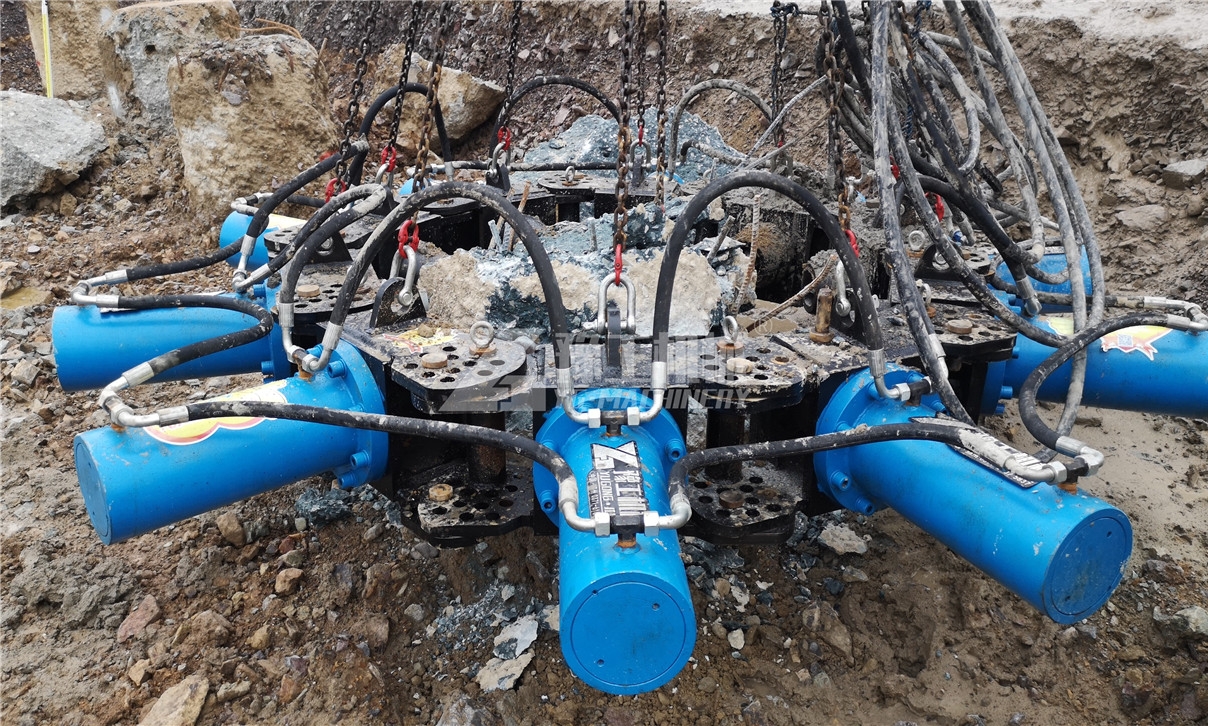 中鐵建工集團(tuán)下屬浙江臺(tái)州火車站房建工程項(xiàng)目工地直徑850-1100mm的圓柱形灌注樁,高約2-3米,施工方為了提高施工效率,摒棄老舊的人工破除法,改用豫工破樁機(jī)進(jìn)行機(jī)械破除。 本次施工采用挖掘機(jī)吊取破樁機(jī),并以它為移動(dòng)載具,同時(shí)作為動(dòng)力源提供破樁動(dòng)力。由施工人員指揮輔助將破樁機(jī)套入樁身,在截第一段時(shí),在距離樁上端面400mm左右處截,以后往下每隔距離不大于300mm左右截一次。在截后一段時(shí)先清除掉落在樁體周圍的碎混凝土,再對(duì)準(zhǔn)標(biāo)高線截后一次。 截完后,由一名施工人員將碎混凝土清除,使用工具將標(biāo)高線灌注樁表面處理平整。 試機(jī)過程中,豫工破樁機(jī)被客戶譽(yù)為工地破樁提速神器,直徑850-1100mm,高約2-3米的圓柱形灌注樁,每5分鐘破除!