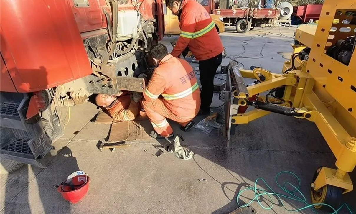 11月10日,在設(shè)備到達(dá)客戶工地的同時,豫工技術(shù)支持部劉工一早到達(dá)客戶工地。由于客戶訂購的是自帶動力的雪滾系列,安裝調(diào)試相對比較簡單,拆下保險杠 安裝支架 連接電源線,即完成調(diào)試工作。