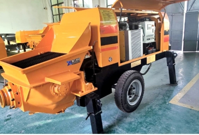 混凝土輸送泵采用電動機(jī)或柴油機(jī)驅(qū)動泵送系統(tǒng),通過液壓系統(tǒng)恒功率控制自動調(diào)節(jié)混凝土輸送泵的輸送量,也可