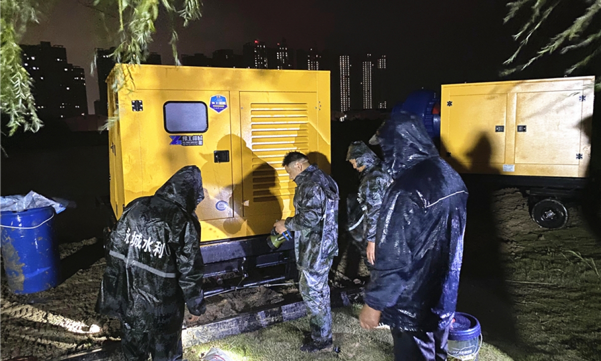 調(diào)試現(xiàn)場,突遭暴雨來襲,張工與技術人員堅守一線,從上午到晚上,從多云到暴雨,奮戰(zhàn)8小時,保證6臺防汛泵車正常工作,力爭設備第一時間執(zhí)行防汛救援任務。