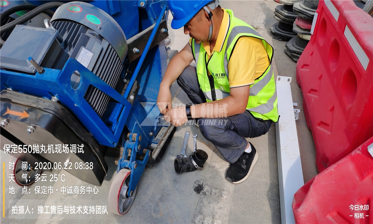 河北市政水泥道路拋丸工程,因?yàn)楣て诰o急,對(duì)路面拋丸機(jī)工作效率和能否滿足施工要求非常重視??蛻艄と舜蠖嗄赀^(guò)六旬,溝通有一定難度,豫工售后人員憑借專業(yè)技術(shù)水平,使工人盡快熟練操作設(shè)備操作步驟,解決客戶后顧之憂。2020年6月21日星期日,正在休息的毛工接到豫工售后與技術(shù)支持部的工作通知,河北保定客戶購(gòu)買550型路面拋丸機(jī),因?yàn)楣て诰o急,必須盡快趕赴客戶工地安裝調(diào)試。到達(dá)工地后,毛工第一時(shí)間投入設(shè)備的安裝調(diào)試工作中去。 因?yàn)榭蛻艄さ毓と舜蠖嗄赀^(guò)六旬,增加了工作溝通和設(shè)備培訓(xùn)的難度。毛工耐心指導(dǎo),不斷重復(fù)培訓(xùn)工人操作步驟和注意事項(xiàng),直到工人熟練掌握,才放心離開(kāi)!