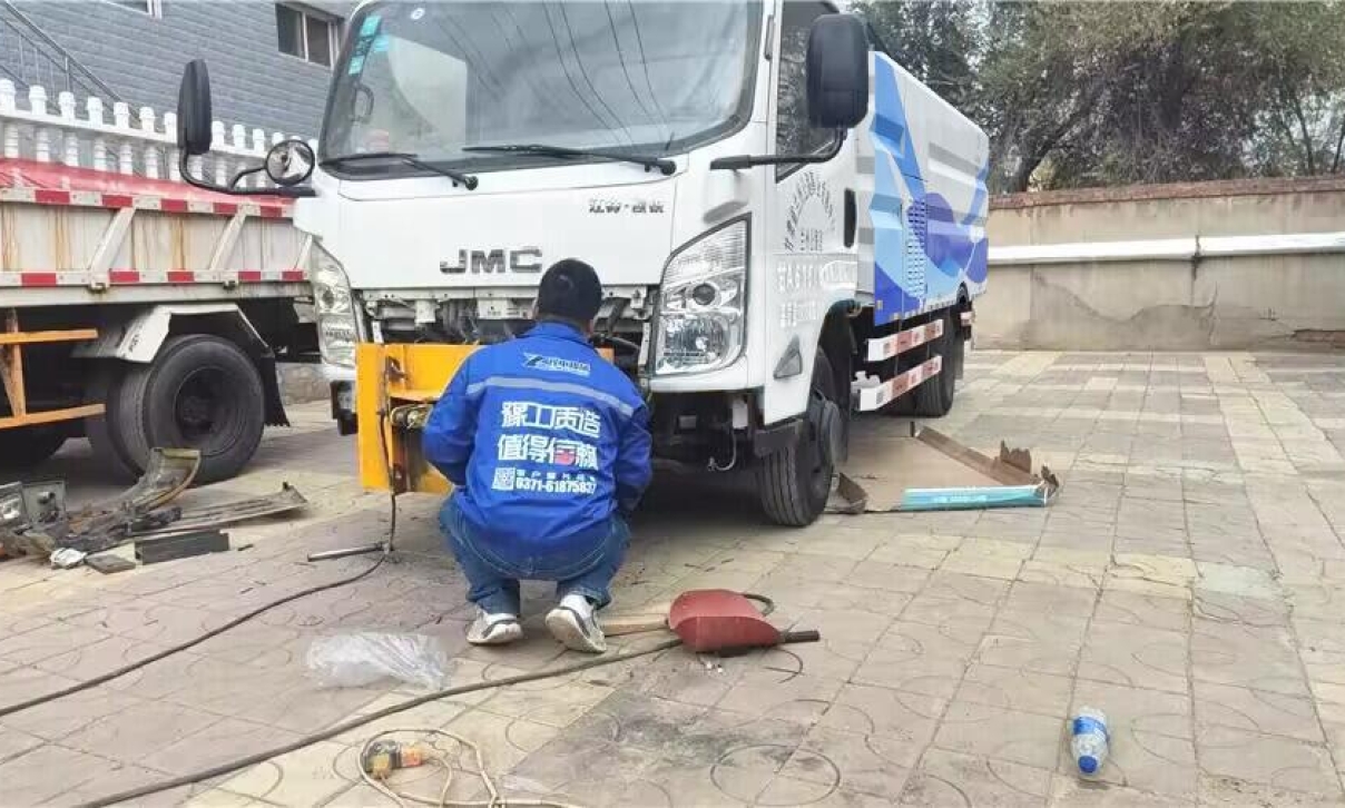 11月15日上午,載著15臺除雪設(shè)備的拖車緩緩駛?cè)牒邶埥@城高速養(yǎng)護(hù)中心,同期抵達(dá)的還有豫工的售后技術(shù)人員。