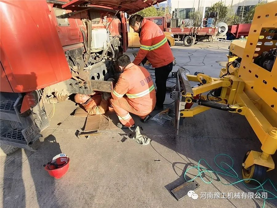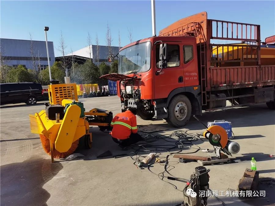 11月10日,在設(shè)備到達(dá)客戶工地的同時,豫工技術(shù)支持部劉工一早到達(dá)客戶工地。由于客戶訂購的是自帶動力的雪滾系列,安裝調(diào)試相對比較簡單,拆下保險杠 安裝支架 連接電源線,即完成調(diào)試工作。